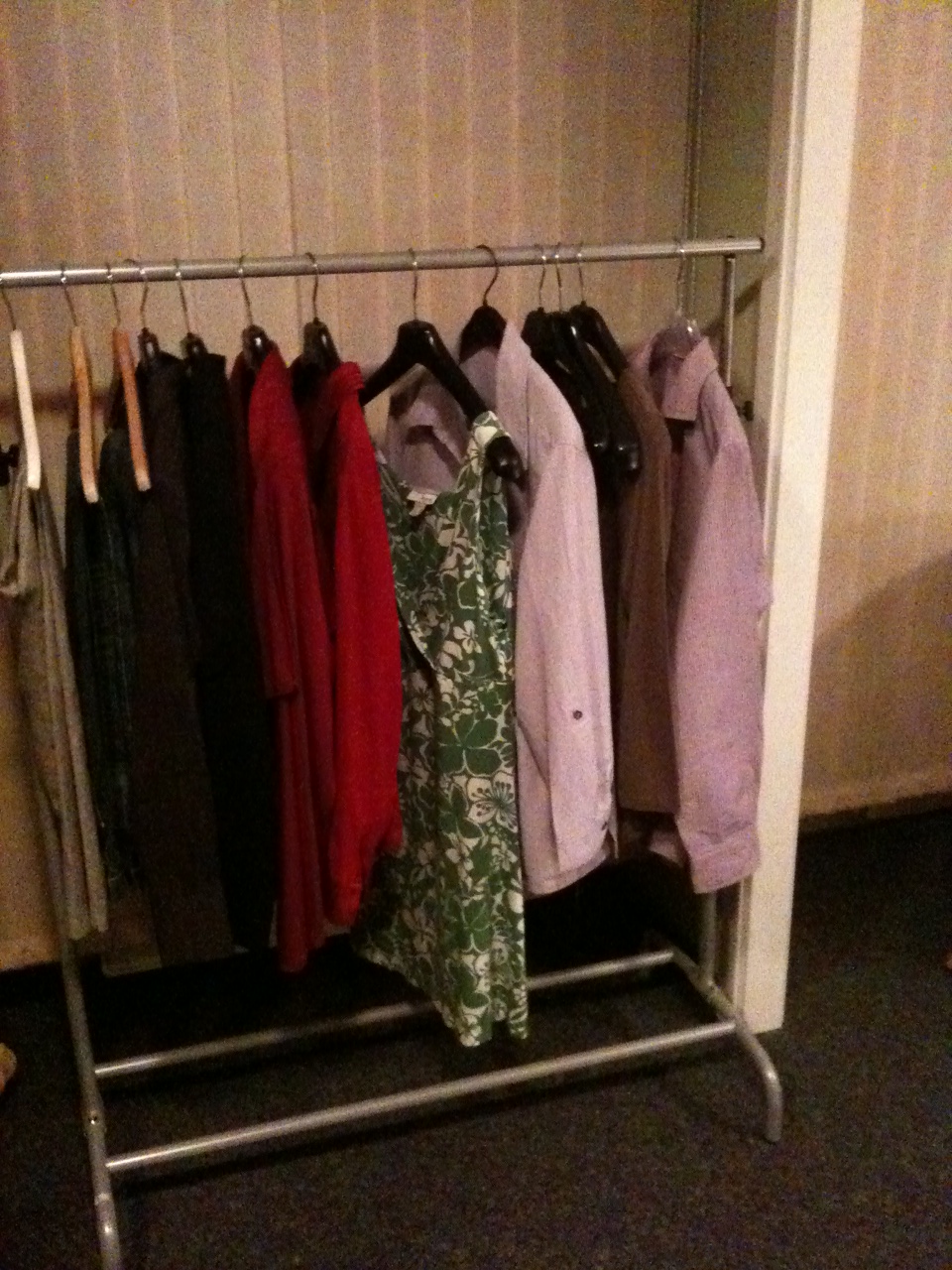 Gestern Abend – natürlich wieder viel zu spät so 23:00 aufwärts – saß ich hier im Flur … bewaffnet mit einer Ikea-Bauanleitung, diversen Teilen und Schrauben, einem Sherry und etwas Schoki zur Entspannung. Das Ergebnis der Bastelstunde war ein Kleiderständer. Warum das Ganze? Meine Putzi hatte vorgeschlagen, sie bügelt. Ähm … da ich eigentlich gerne bügle, bin ich da bei vielem etwas eigen (über 40 darf man das bestimmt *g*). Vorallem aber wollte ich nicht, dass sie mir die Sachen irgendwo in den Schrank hängt, denn dann bin ich nur am Suchen. Auch wenn es manche nicht für vorstellbar halten … die Anordnung des Inhaltes hat ein System. Naja, deswegen war es dringend erforderlich (für mich) den Garderobenständer hinzustellen. Ähnliches, bei Tobi schon erprobt, erwies sich als feine Sache.