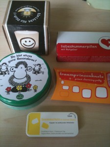 – Überlebens- und Trostpäckchen von Carola (Da ist es glatt schön, dass es einem beschissen geht. *schmunzel* Danke!)